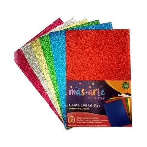 GOMA EVA MAS ARTE GLITTER 20x30cm. 6un.surtido