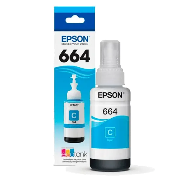 Botella de tinta cyan Epson 664 de 70 ml.