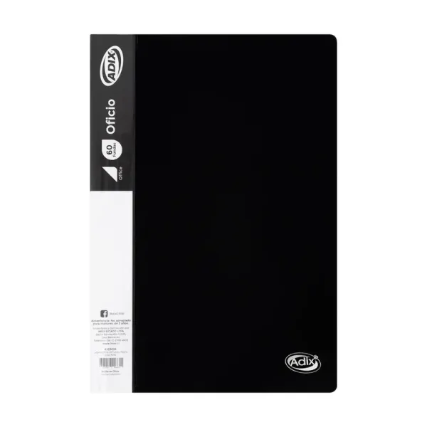 Carpeta plástica negra para 60 fundas oficio.