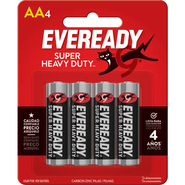 Paquete de 4 pilas Eveready Carbon AA.