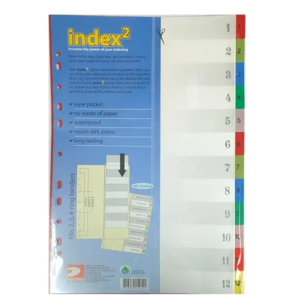 Separador plástico de oficio con 12 divisiones para organizar documentos.
